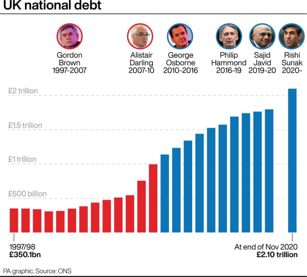 The latest estimate saw public sector net debt reach a brand new all-time high of lb2.1 trillion at the end of last month.