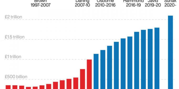 Despite claiming to become the party of fiscal responsibility, the UK’s debt pile under the Conservatives has grown exponentially in the last decade.